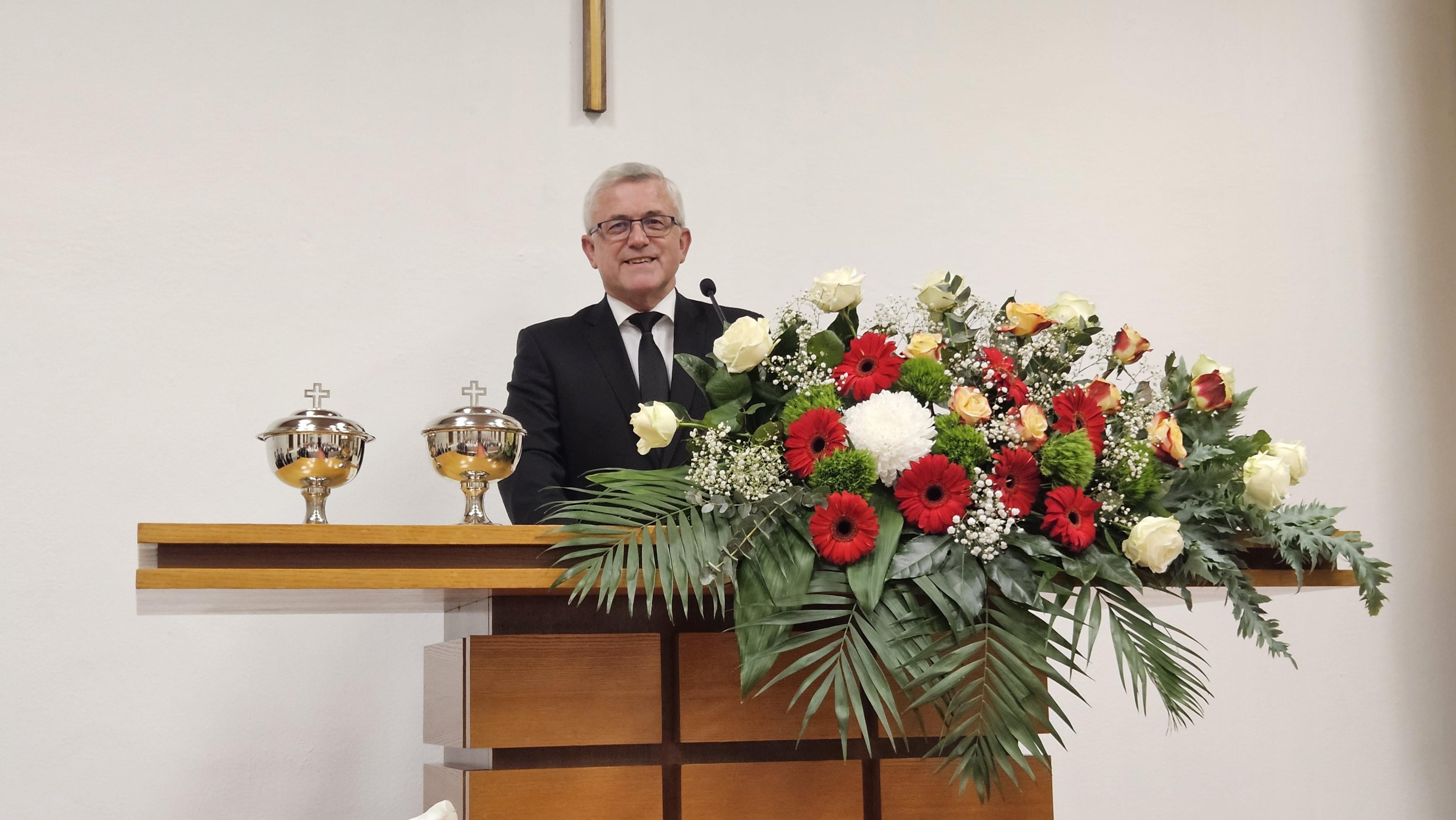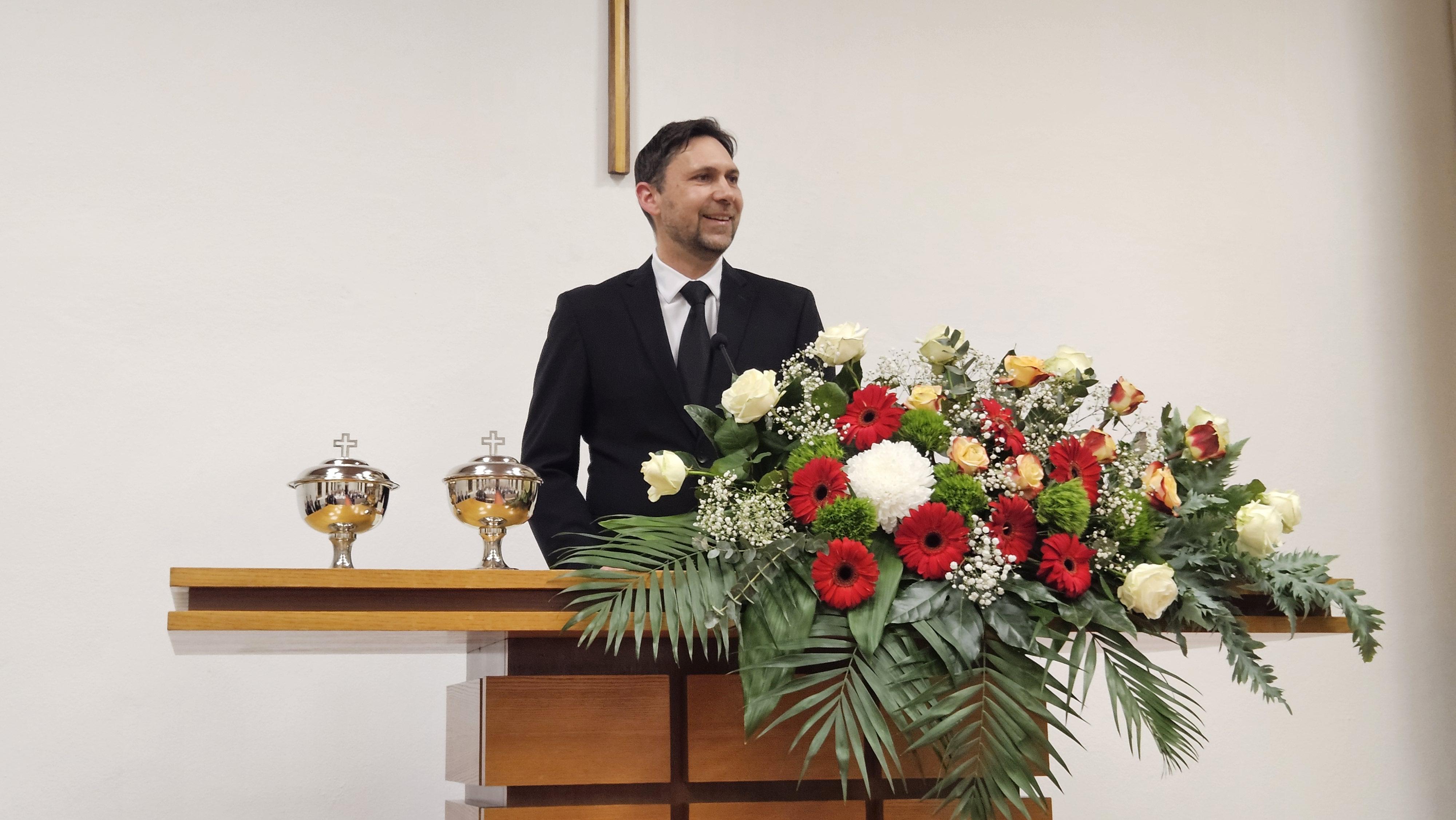 Priester Mirko Kramer sprach in seiner Predigtzugabe über die Gemeinschaft im kleinen Kreis, wie sie beispielsweise in der Krankenseelsorge erlebt wird. Gerade in stillen und persönlichen Momenten zeigt sich, dass Christus auch dort gegenwärtig ist, wo nur wenige in seinem Namen versammelt sind. Anhand eines Beispiels aus dem beruflichen Alltag verdeutlichte er zudem die Bedeutung der Worte „versammelt sein im Namen Jesu“. Das Handeln im Namen eines anderen ist stets mit Verantwortung verbunden. Diese Verantwortung gilt auch für das geistliche Leben. Wenn sich die Gemeinde im Namen Jesu versammelt, ist Christus selbst mitten unter ihr. Das ist eine große Gnade und ein Erlebnis, für das wir dankbar sein dürfen.